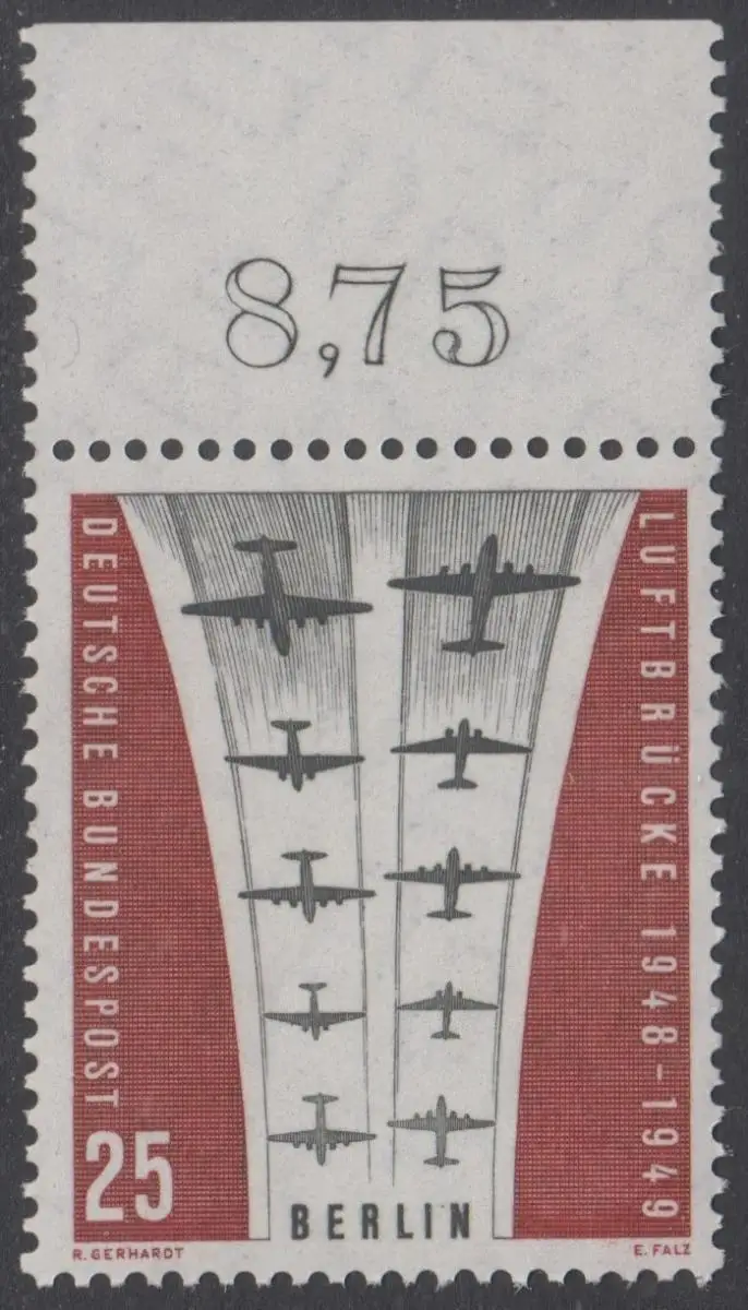 BERLIN 1959 Michel-Nummer 188 postfrisch EINZELMARKE RAND oben (f) - Berliner Luftbrücke