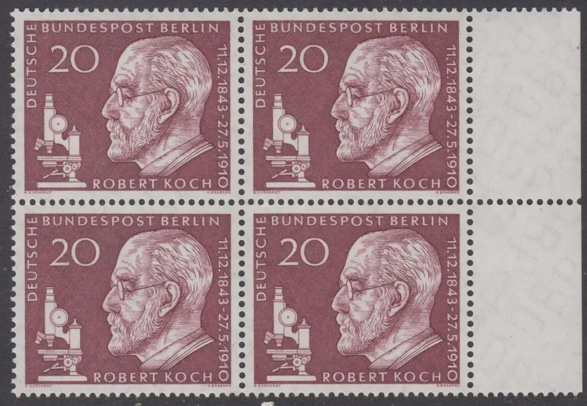 BERLIN 1960 Michel-Nummer 191 postfrisch BLOCK Ränder rechts - Todestag von Robert Koch
