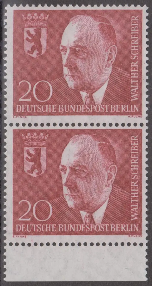 BERLIN 1960 Michel-Nummer 192 postfrisch vert.PAAR RAND unten - Todestag von Walther Schreiber, Politiker