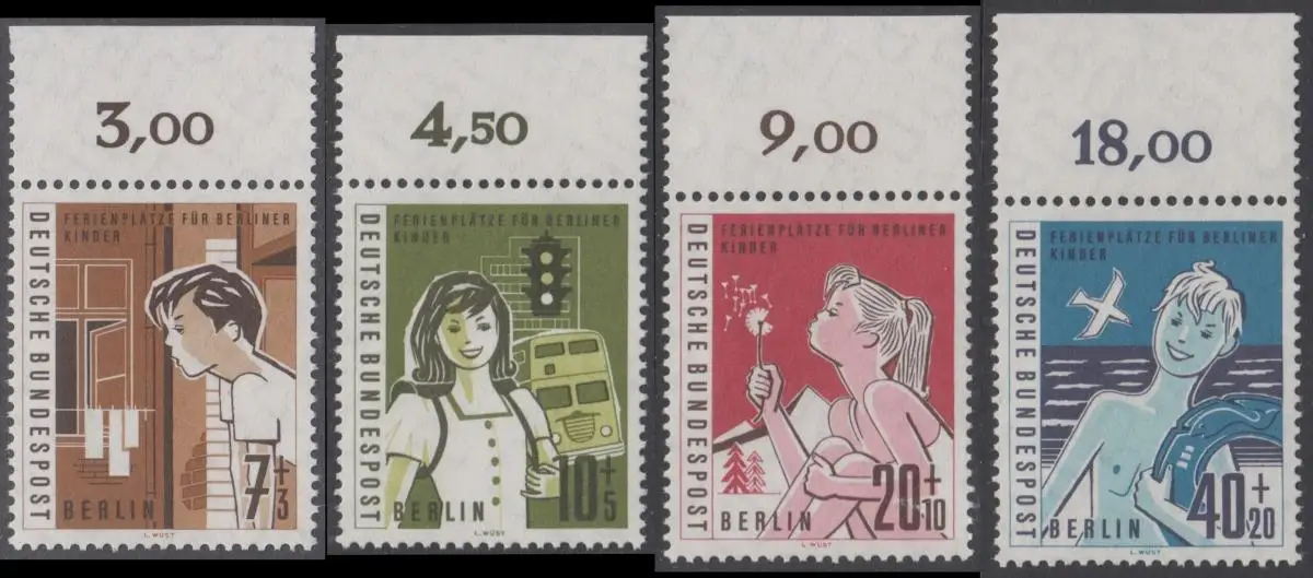 BERLIN 1960 Michel-Nummer 193-196 postfrisch SATZ(4) EINZELMARKEN Ränder oben (e) - Hilfswerk Berlin: Ferienplätze für Berliner Kinder