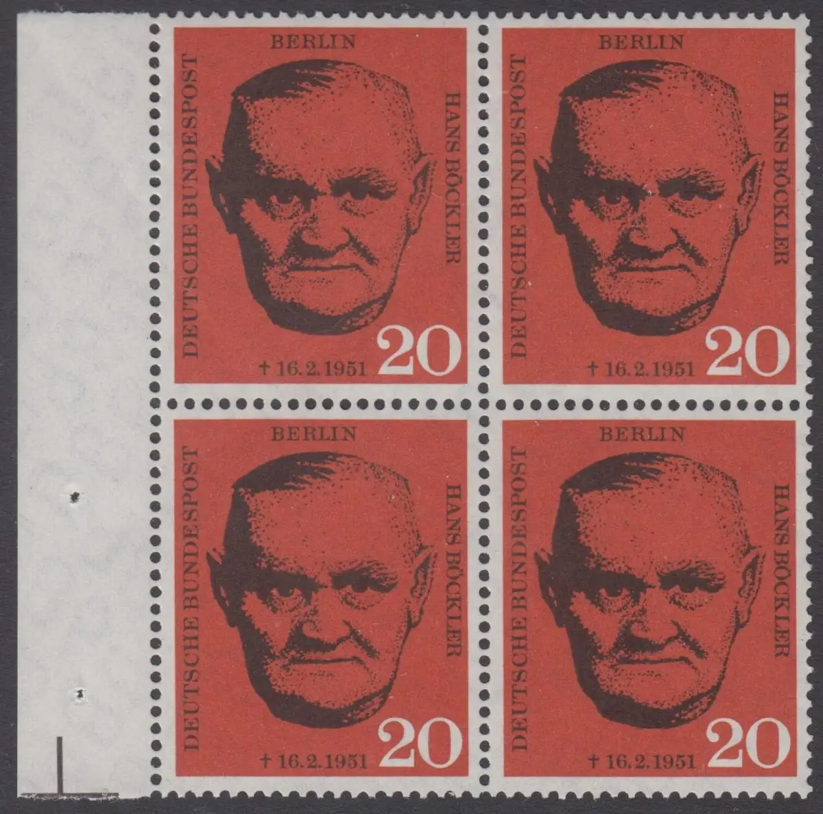 BERLIN 1961 Michel-Nummer 197 postfrisch BLOCK RÄNDER links - Todestag von Hans Böckler, Gewerkschaftsführer