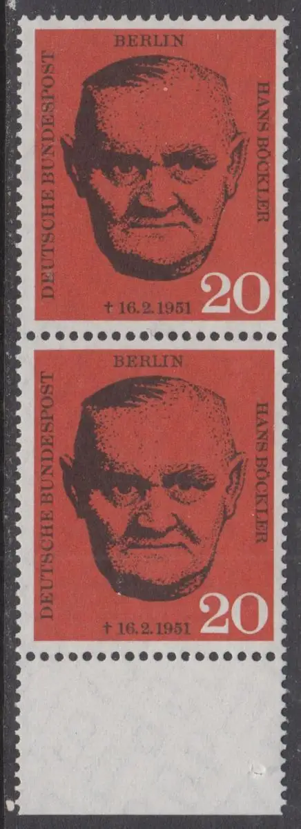 BERLIN 1961 Michel-Nummer 197 postfrisch vert.PAAR RAND unten - Todestag von Hans Böckler, Gewerkschaftsführer