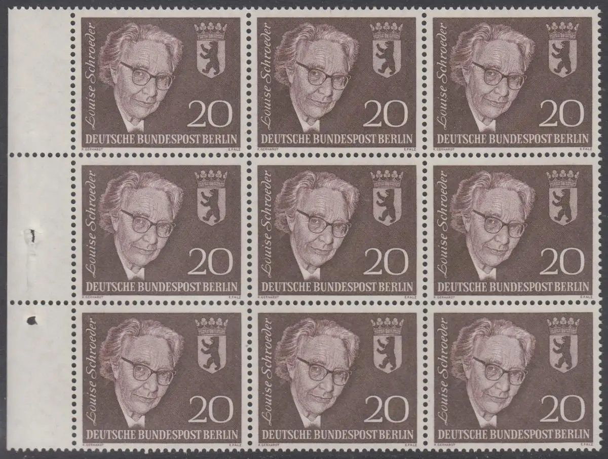 BERLIN 1961 Michel-Nummer 198 postfrisch BLOCK(9) RÄNDER links - Todestag von Louise Schröder, Politikerin
