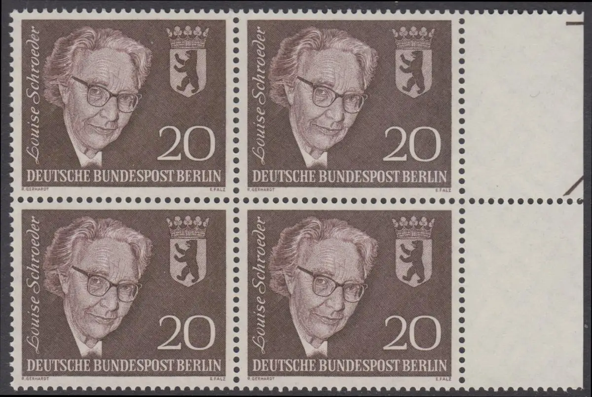 BERLIN 1961 Michel-Nummer 198 postfrisch BLOCK RÄNDER rechts (b) - Todestag von Louise Schröder, Politikerin