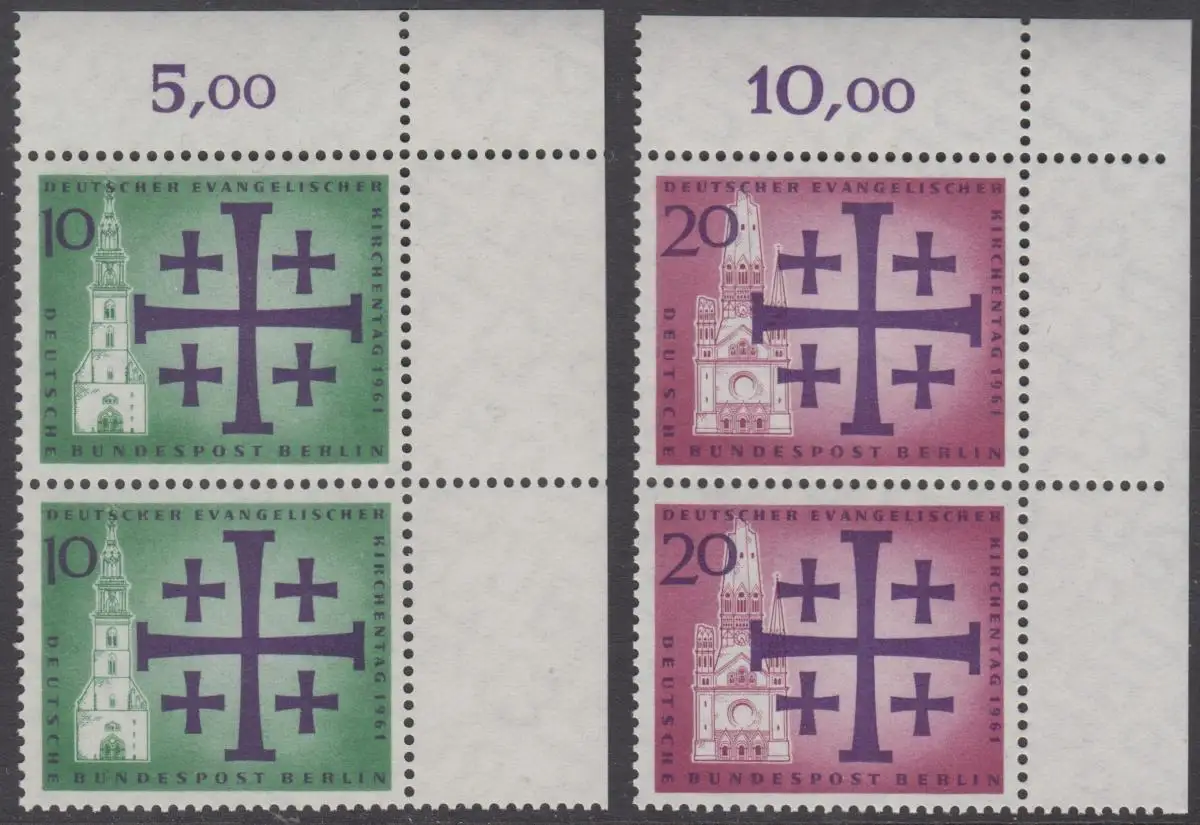BERLIN 1961 Michel-Nummer 215-216 postfrisch SATZ(2) vert.PAARE ECKRÄNDER oben rechts - Deutscher Evangelischer Kirchentag, Berlin