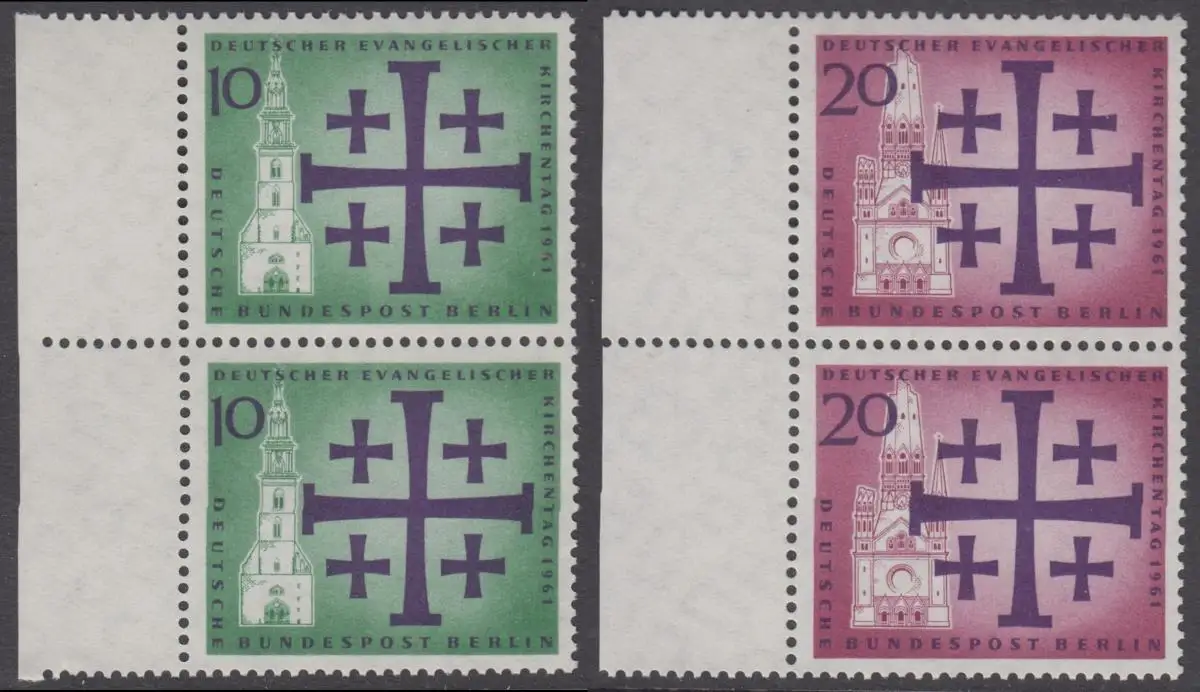 BERLIN 1961 Michel-Nummer 215-216 postfrisch SATZ(2) vert.PAARE RÄNDER links - Deutscher Evangelischer Kirchentag, Berlin