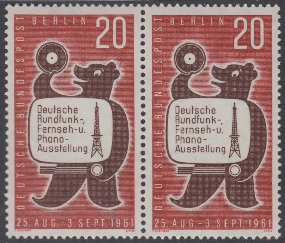 BERLIN 1961 Michel-Nummer 217 postfrisch horiz.PAAR - Deutsche Rundfunk-, Fernseh- und Phono-Ausstellung, Berlin