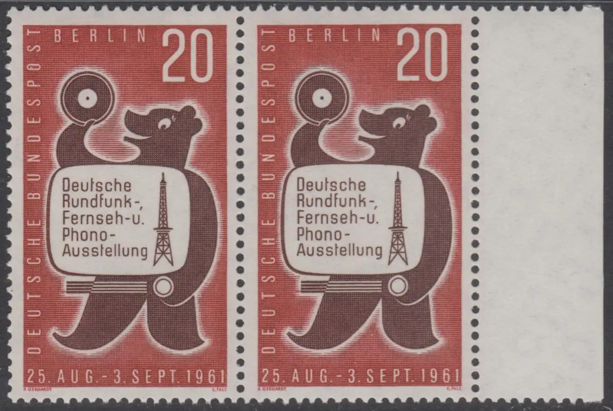BERLIN 1961 Michel-Nummer 217 postfrisch horiz.PAAR RAND rechts - Deutsche Rundfunk-, Fernseh- und Phono-Ausstellung, Berlin