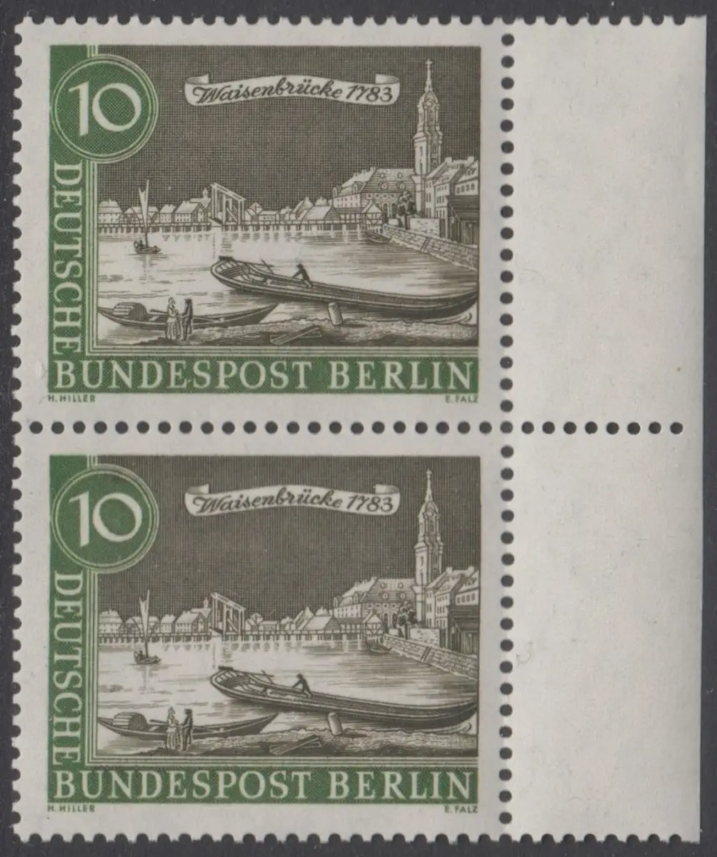BERLIN 1962 Michel-Nummer 219 postfrisch vert.PAAR RAND rechts - Alt-Berlin: Waisenbrücke