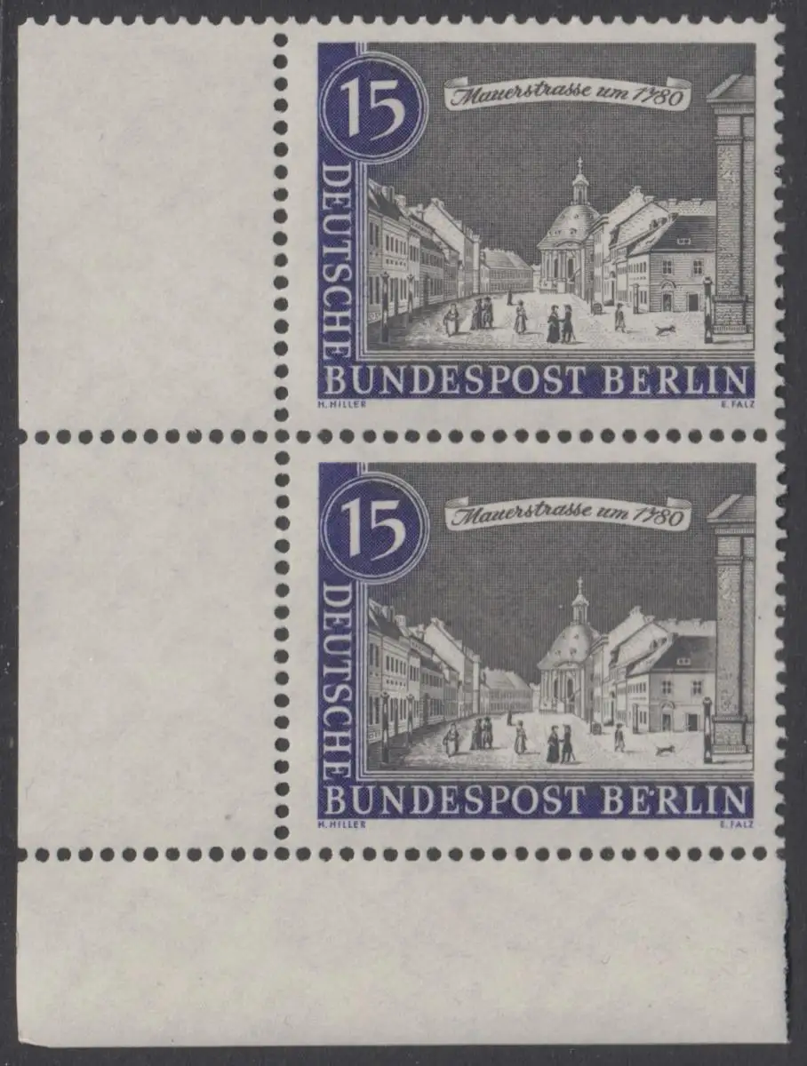 BERLIN 1962 Michel-Nummer 220 postfrisch vert.PAARECKRAND unten links - Alt-Berlin: Mauerstraße