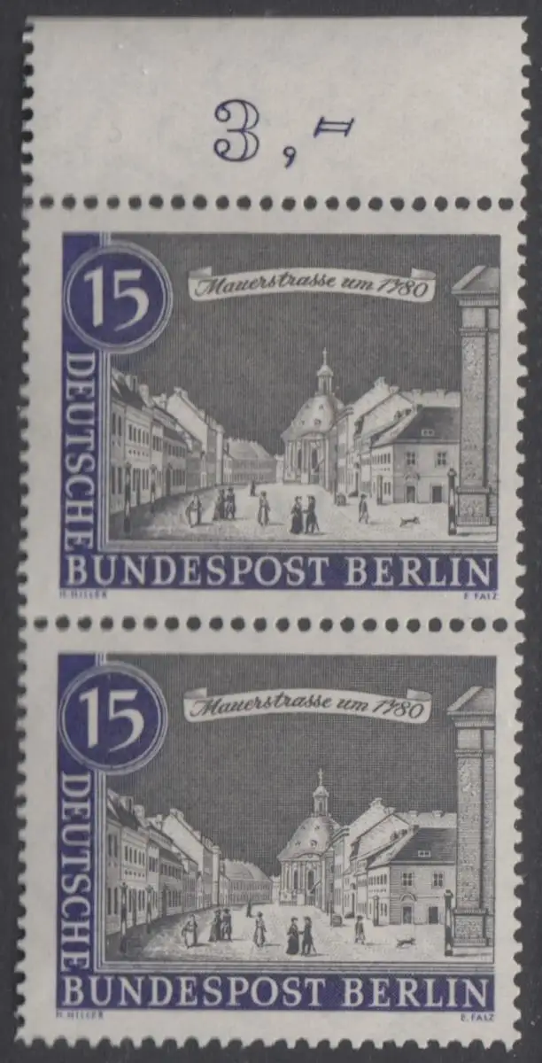 BERLIN 1962 Michel-Nummer 220 postfrisch vert.PAAR RAND oben (a) - Alt-Berlin: Mauerstraße