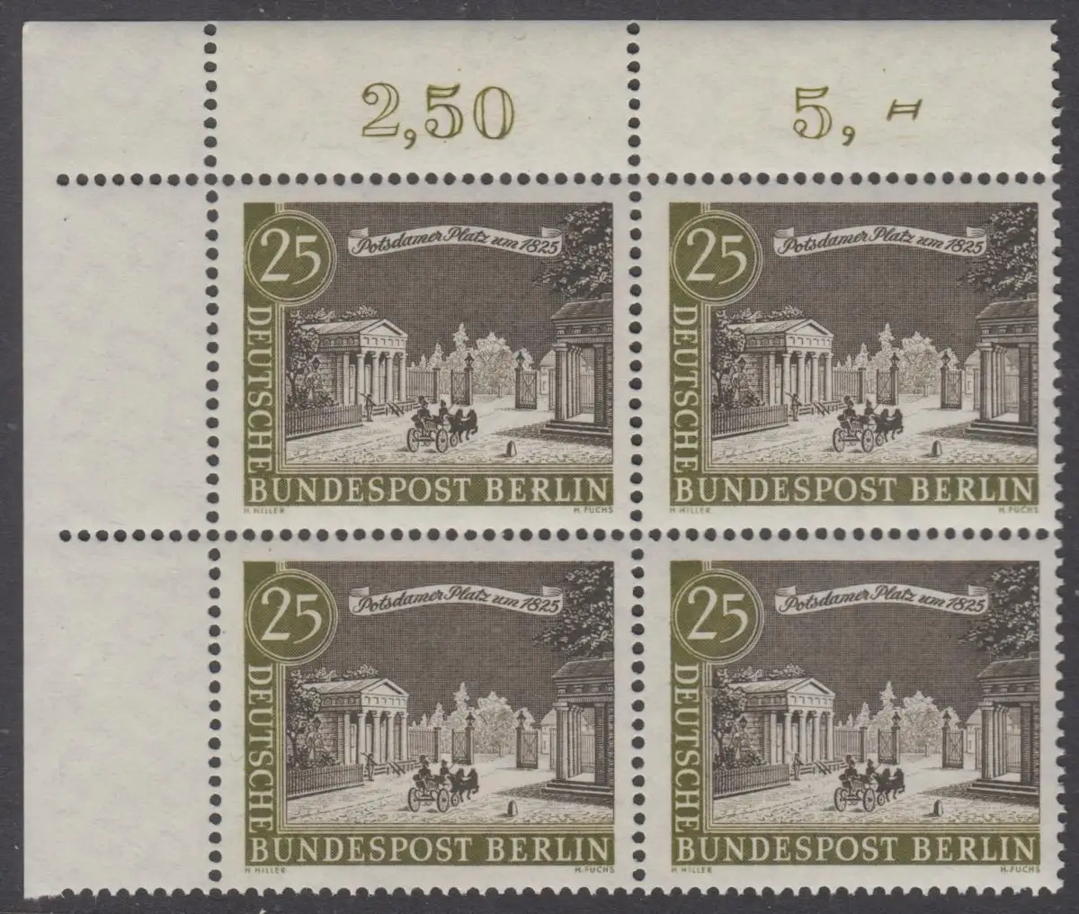 BERLIN 1962 Michel-Nummer 222 postfrisch BLOCK ECKRAND oben links - Alt-Berlin: Potsdamer Platz
