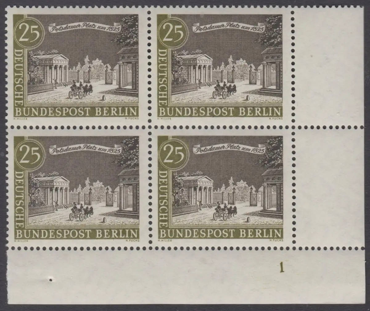 BERLIN 1962 Michel-Nummer 222 postfrisch BLOCK ECKRAND unten rechts m/ Formnummer (a) - Alt-Berlin: Potsdamer Platz