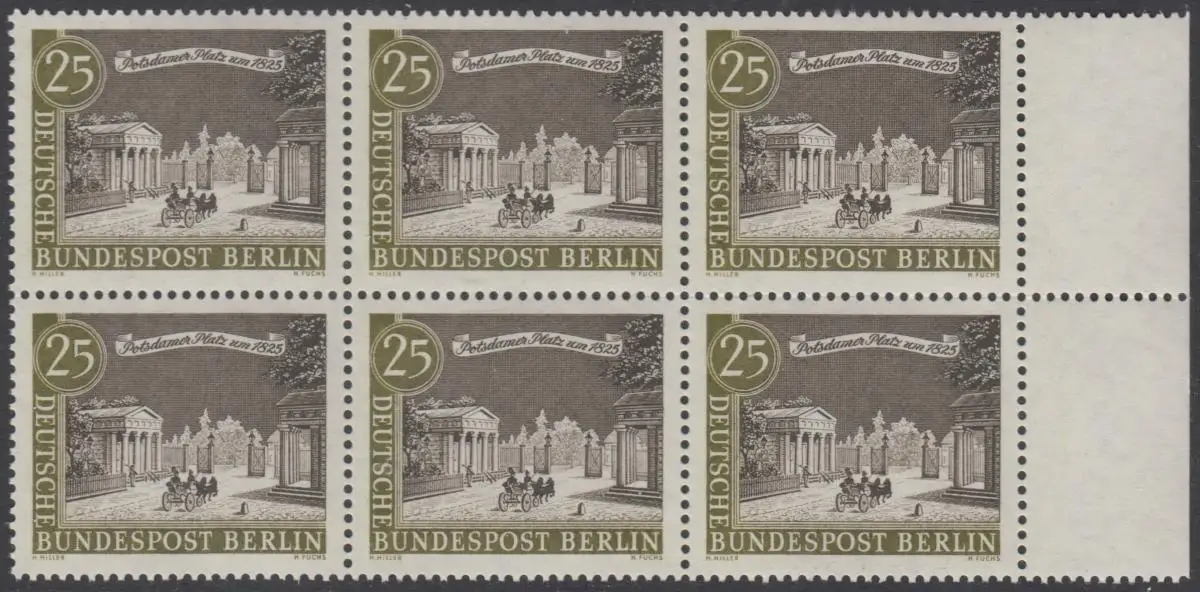BERLIN 1962 Michel-Nummer 222 postfrisch horiz.BLOCK(6) RÄNDER rechts - Alt-Berlin: Potsdamer Platz