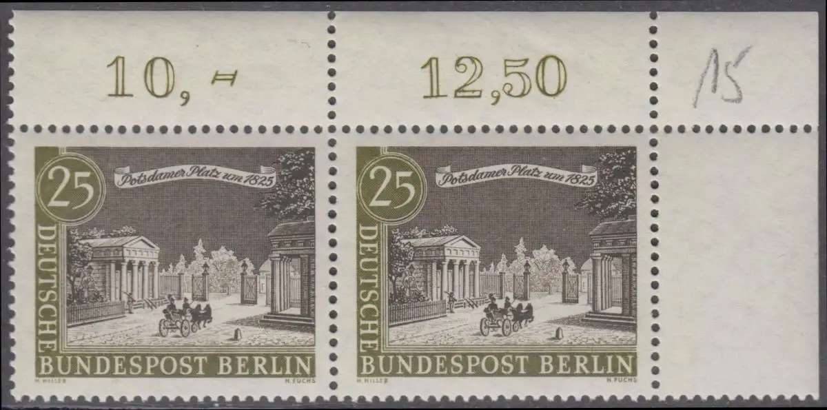 BERLIN 1962 Michel-Nummer 222 postfrisch horiz.PAAR ECKRAND oben rechts - Alt-Berlin: Potsdamer Platz