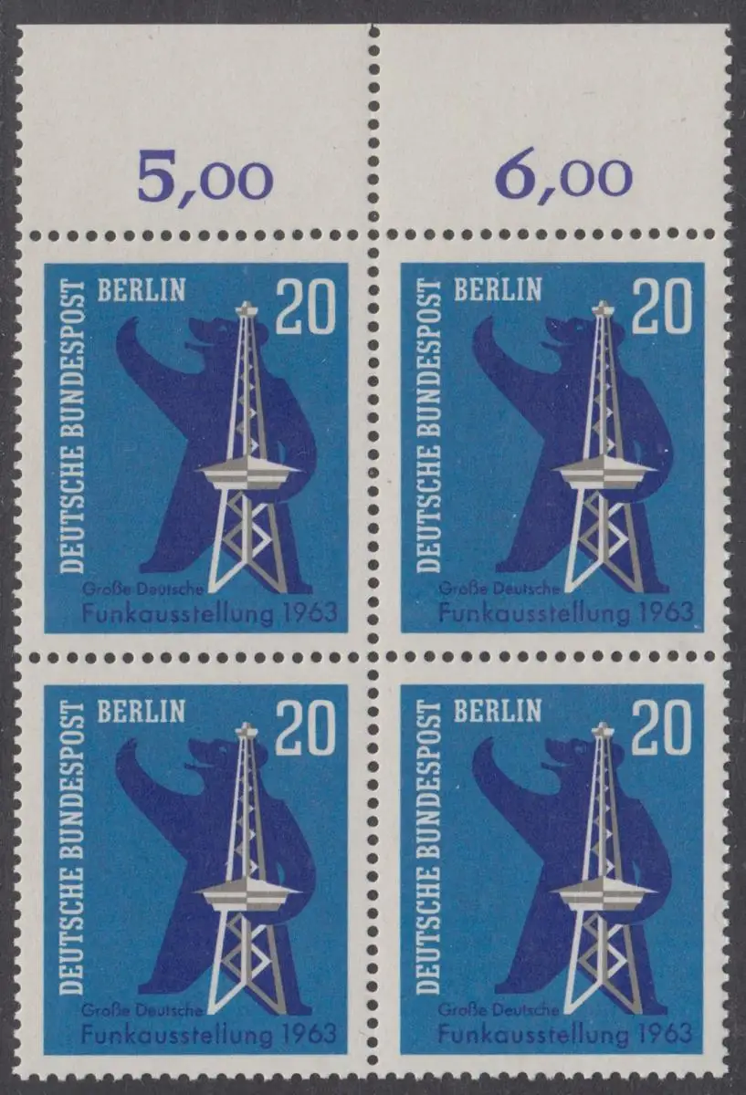 BERLIN 1963 Michel-Nummer 232 postfrisch BLOCK RÄNDER oben (b) - Große Deutsche Funkausstellung, Berlin