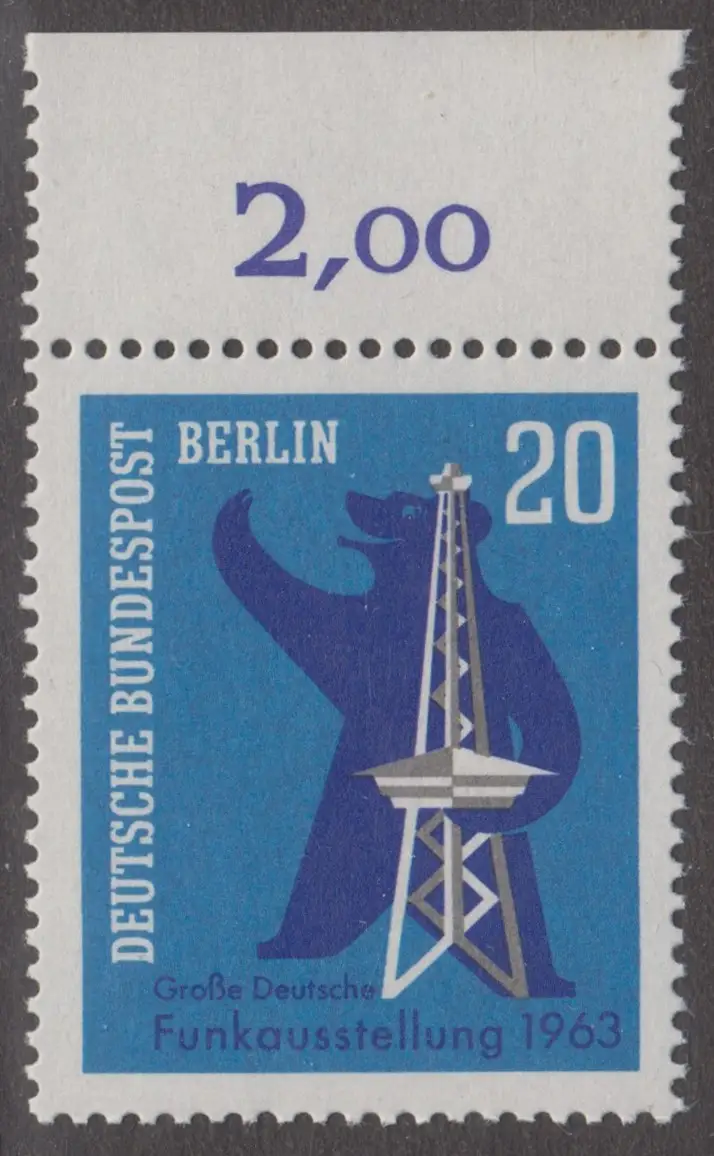 BERLIN 1963 Michel-Nummer 232 postfrisch EINZELMARKE RAND oben (a) - Große Deutsche Funkausstellung, Berlin