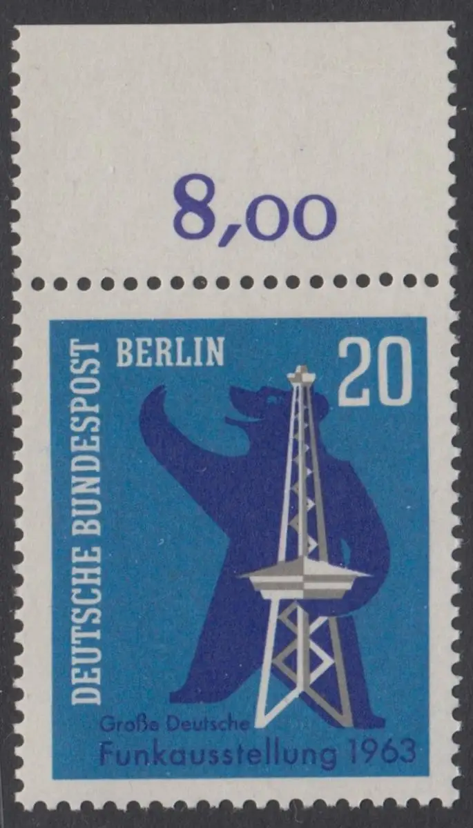 BERLIN 1963 Michel-Nummer 232 postfrisch EINZELMARKE RAND oben (g) - Große Deutsche Funkausstellung, Berlin