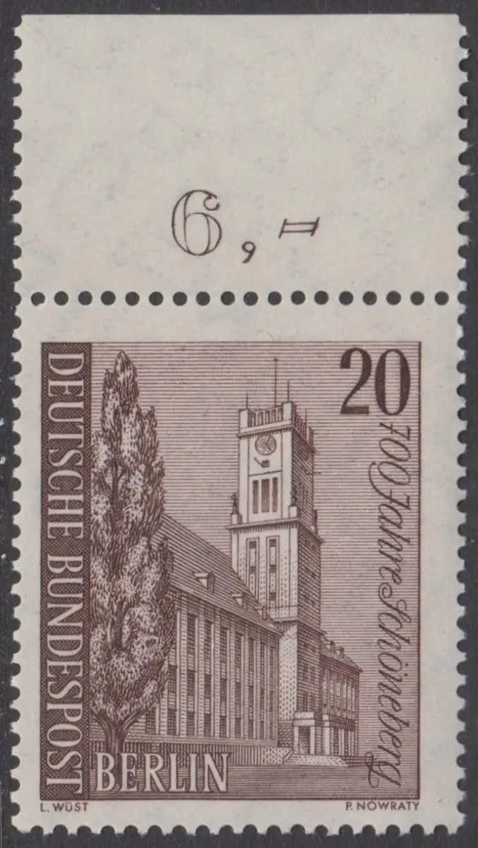 BERLIN 1964 Michel-Nummer 233 postfrisch EINZELMARKE RAND oben (d) - Schöneberg, Rathaus