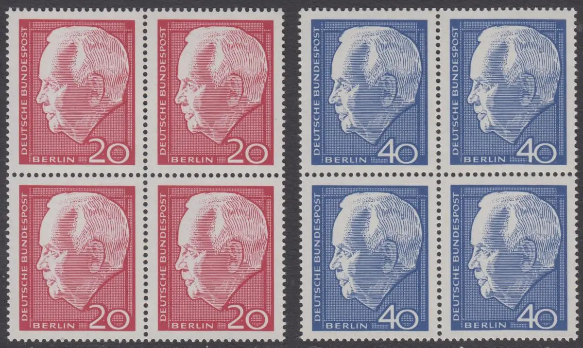 BERLIN 1964 Michel-Nummer 234-235 postfrisch SATZ(2) BLÖCKE - Wiederwahl des Bundespräsidenten Heinrich Lübke