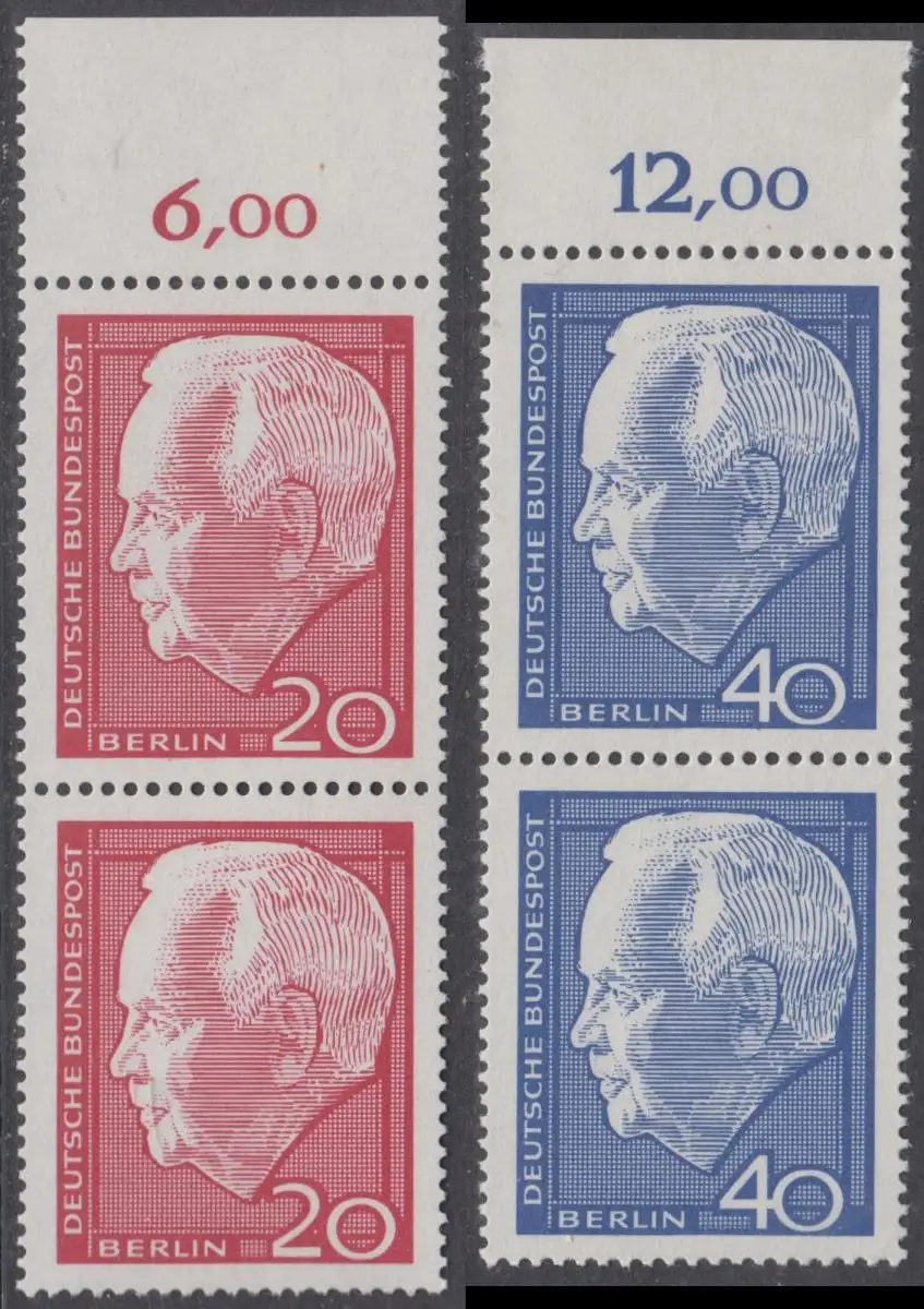 BERLIN 1964 Michel-Nummer 234-235 postfrisch SATZ(2) vert.PAARE RÄNDER oben (e) - Wiederwahl des Bundespräsidenten Heinrich Lübke