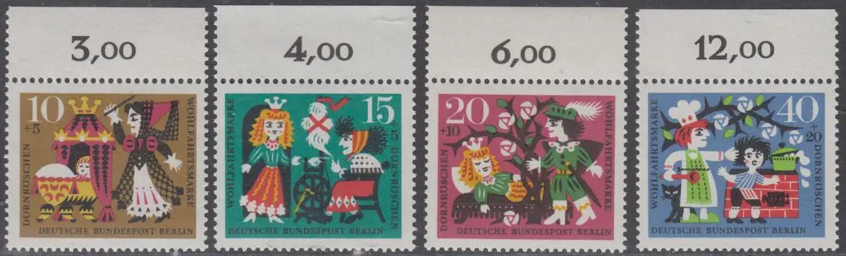 BERLIN 1964 Michel-Nummer 237-240 postfrisch SATZ(4) EINZELMARKEN RÄNDER oben (a) - Märchen der Gebrüder Grimm: Dornröschen