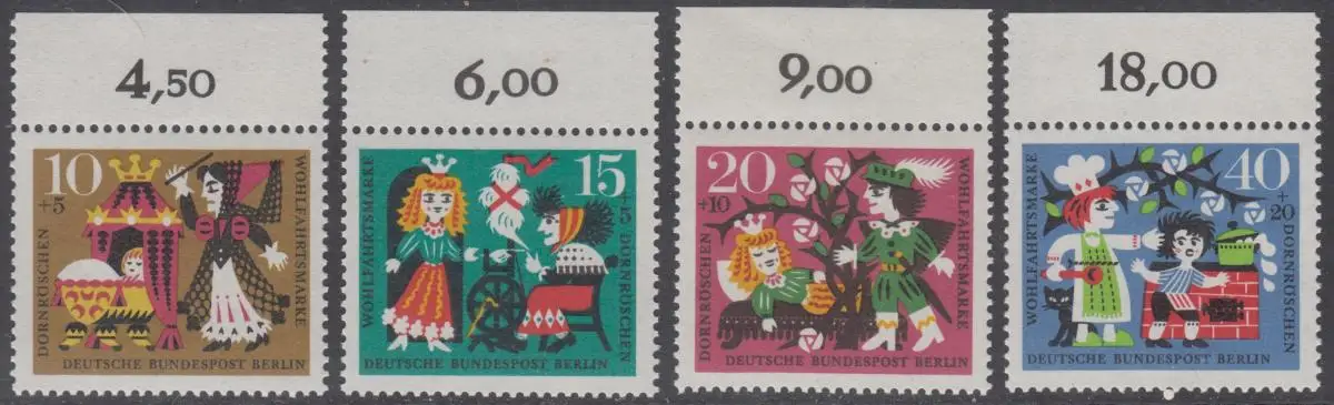 BERLIN 1964 Michel-Nummer 237-240 postfrisch SATZ(4) EINZELMARKEN RÄNDER oben (b) - Märchen der Gebrüder Grimm: Dornröschen