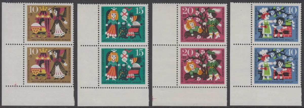 BERLIN 1964 Michel-Nummer 237-240 postfrisch SATZ(4) vert.PAARE ECKRÄNDER unten links - Märchen der Gebrüder Grimm: Dornröschen