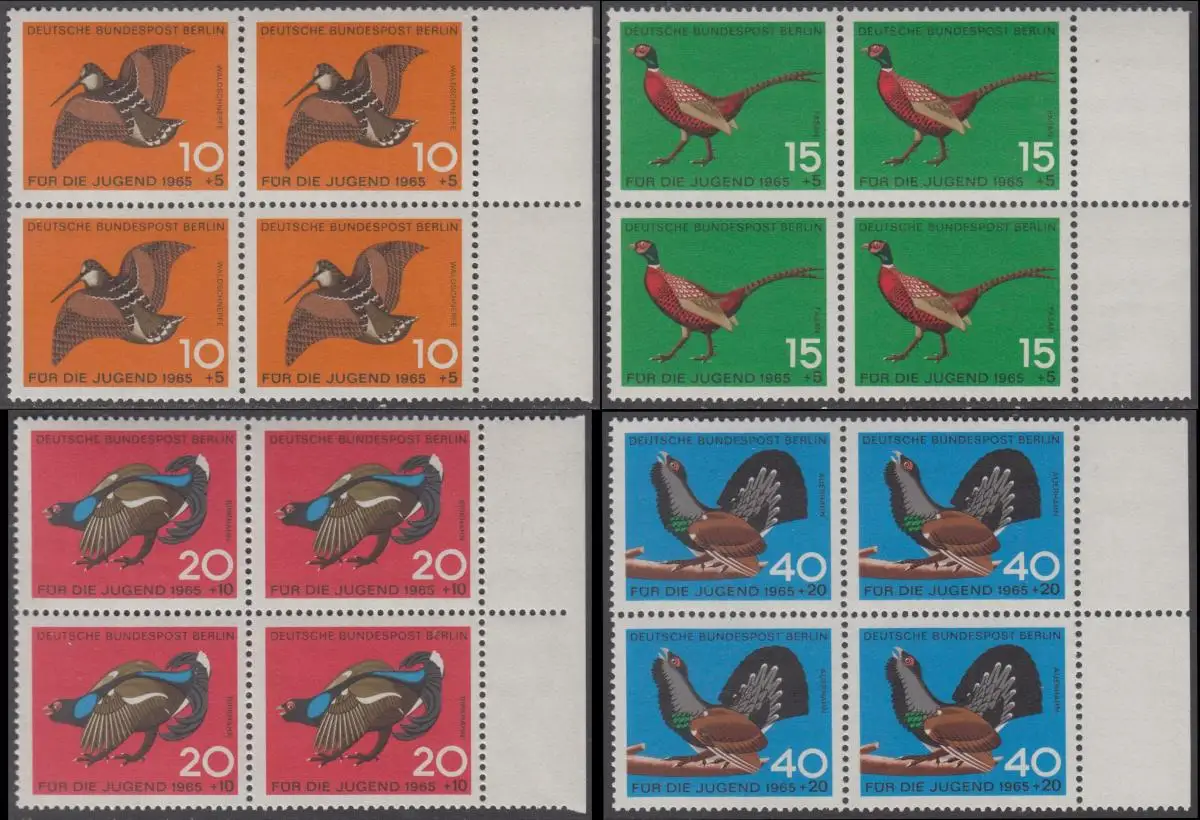 BERLIN 1965 Michel-Nummer 250-253 postfrisch SATZ(4) BLÖCKE RÄNDER rechts - Jagdbares Federwild