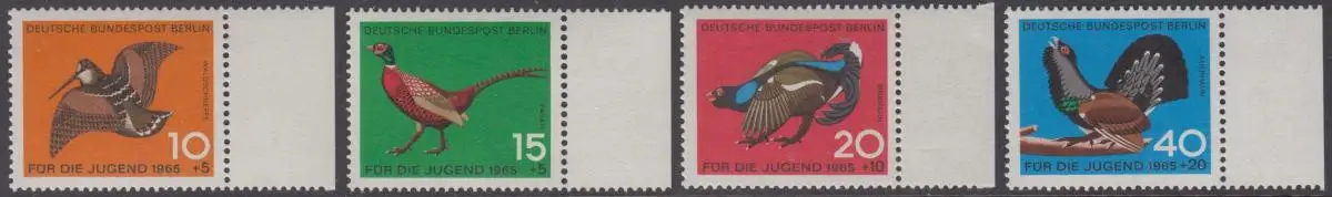BERLIN 1965 Michel-Nummer 250-253 postfrisch SATZ(4) EINZELMARKEN RÄNDER rechts - Jagdbares Federwild