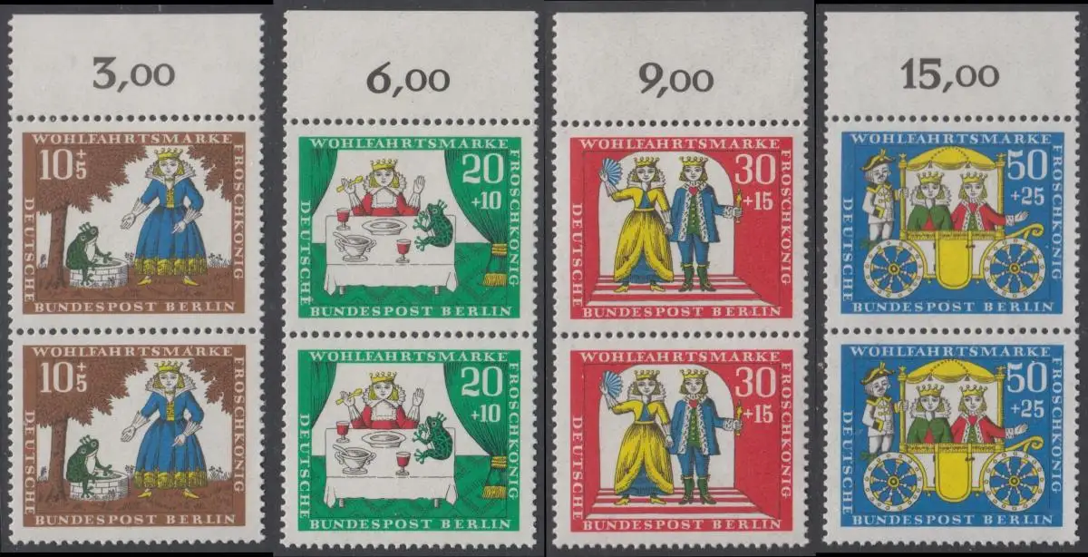 BERLIN 1966 Michel-Nummer 295-298 postfrisch SATZ(4) vert.PAARE RÄNDER oben (a) - Märchen der Brüder Grimm: Der Froschkönig