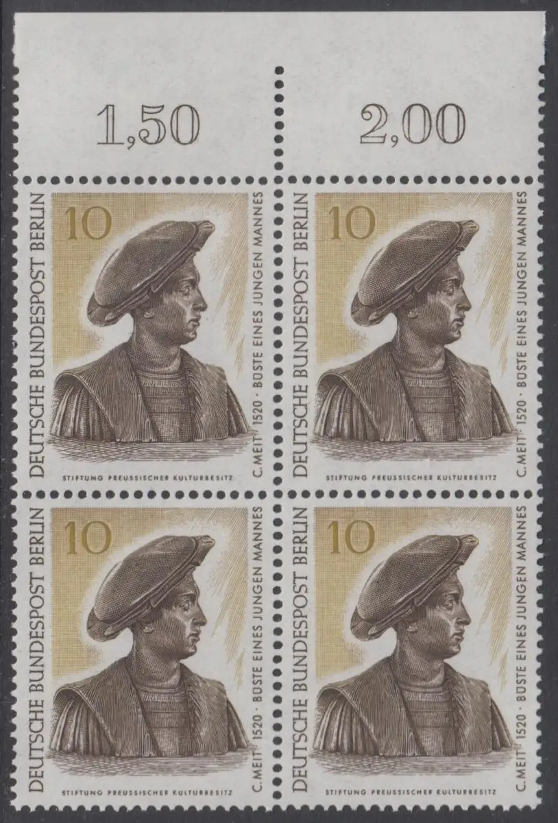 BERLIN 1967 Michel-Nummer 303 postfrisch BLOCK RÄNDER oben (a01) - Berliner Kunstschätze: Büste eines jungen Mannes