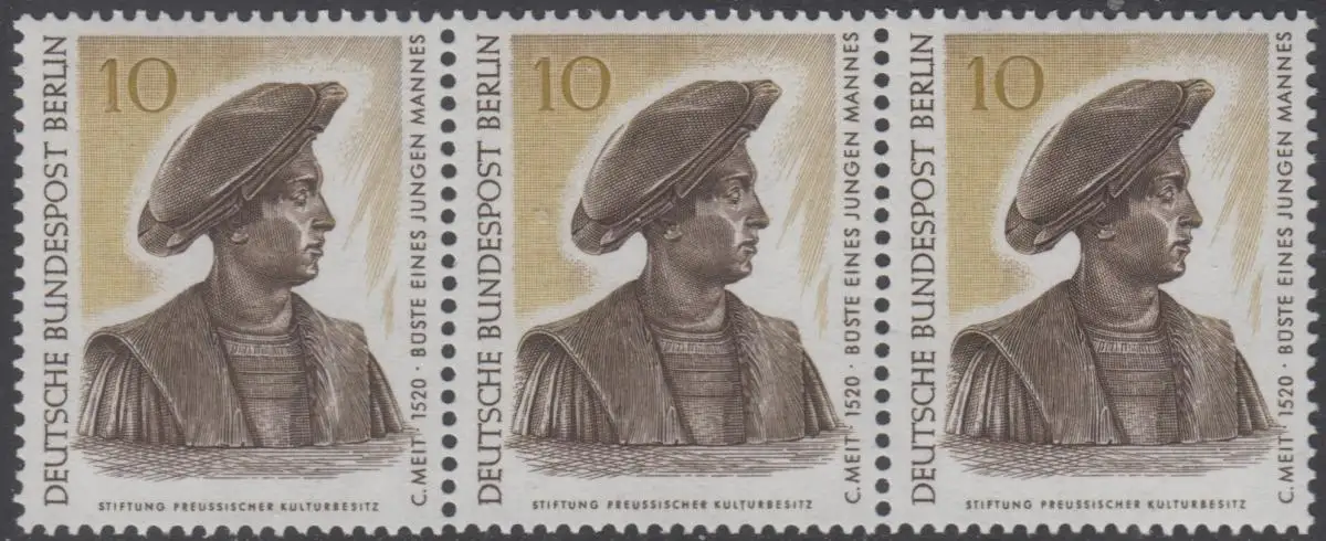 BERLIN 1967 Michel-Nummer 303 postfrisch horiz.STRI(3) - Berliner Kunstschätze: Büste eines jungen Mannes