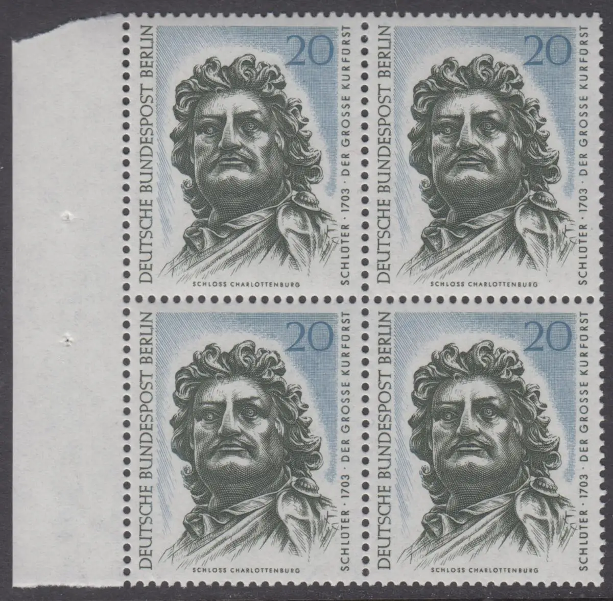 BERLIN 1967 Michel-Nummer 304 postfrisch BLOCK RÄNDER links - Berliner Kunstschätze: Der Große Kurfürst, Kopf des Reiterstandbildes