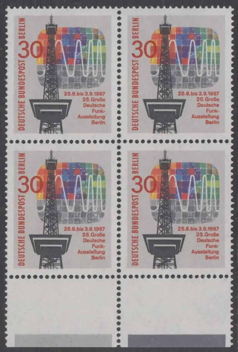 BERLIN 1967 Michel-Nummer 309 postfrisch BLOCK RÄNDER unten (a03) - Große Deutsche Funkausstellung, Berlin