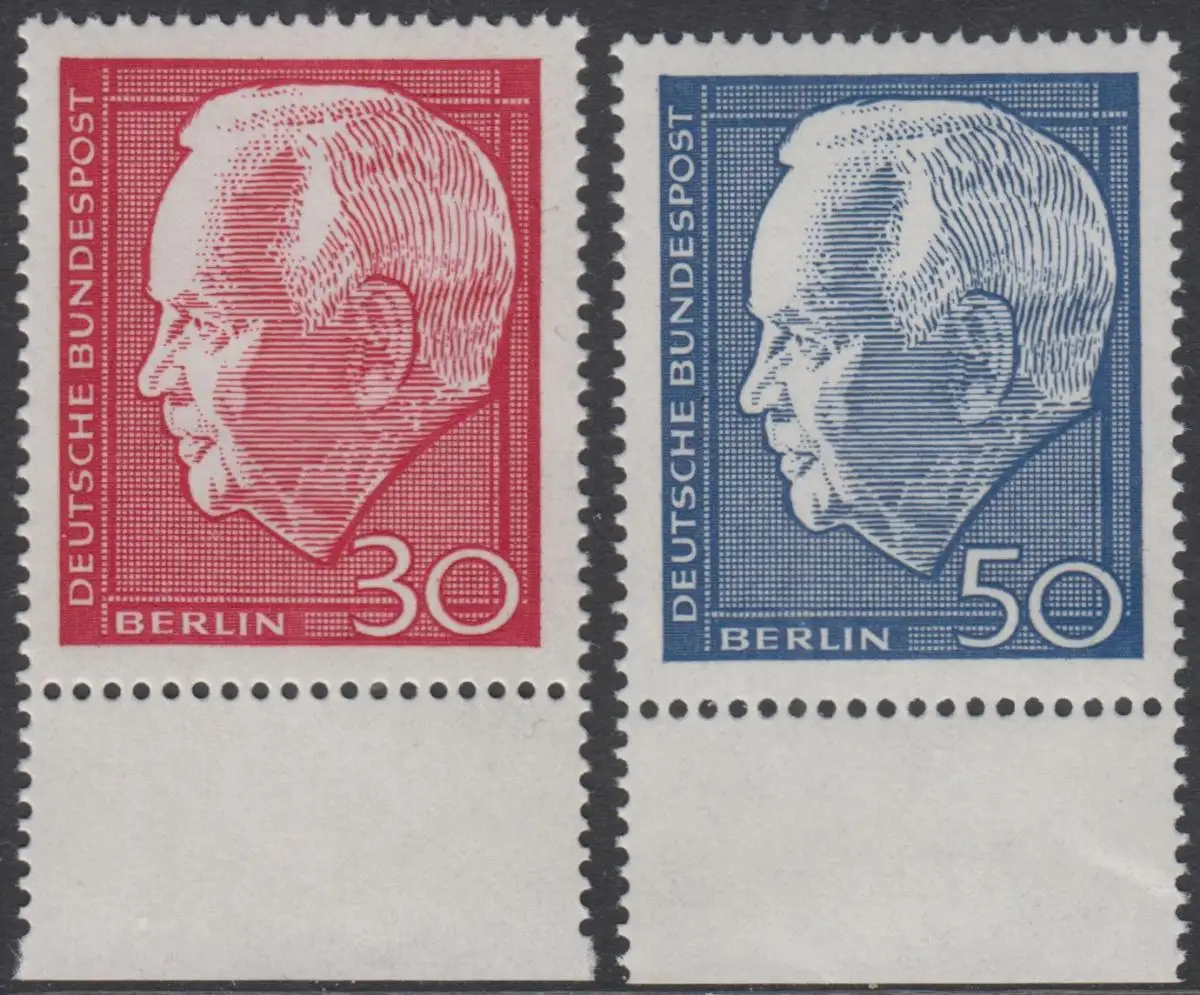 BERLIN 1967 Michel-Nummer 314-315 postfrisch SATZ(2) EINZELMARKEN RÄNDER unten - Wiederwahl des Bundespräsidenten Heinrich Lübke