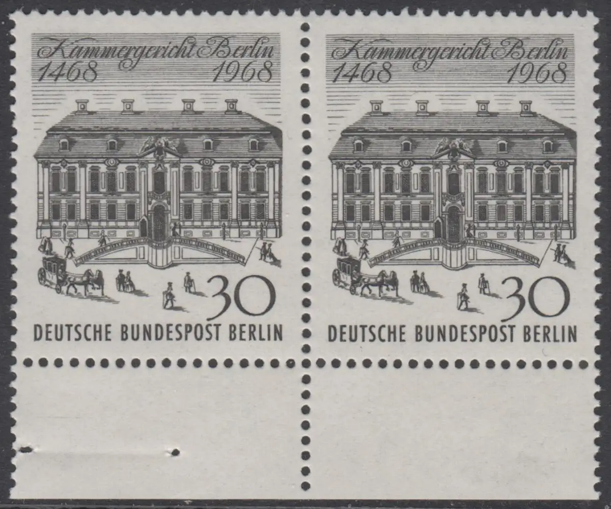 BERLIN 1968 Michel-Nummer 320 postfrisch horiz.PAAR RÄNDER unten - Kammergericht Berlin