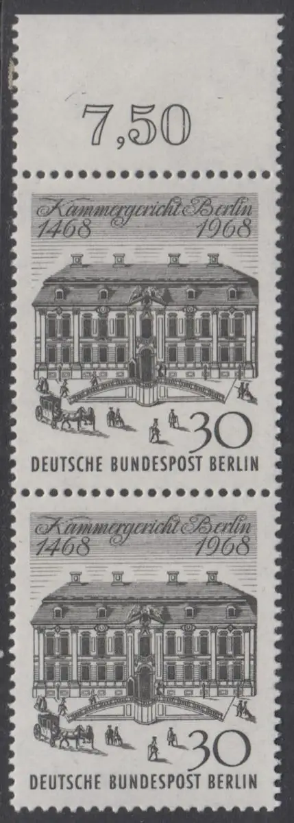 BERLIN 1968 Michel-Nummer 320 postfrisch vert.PAAR RAND oben (d) - Kammergericht Berlin