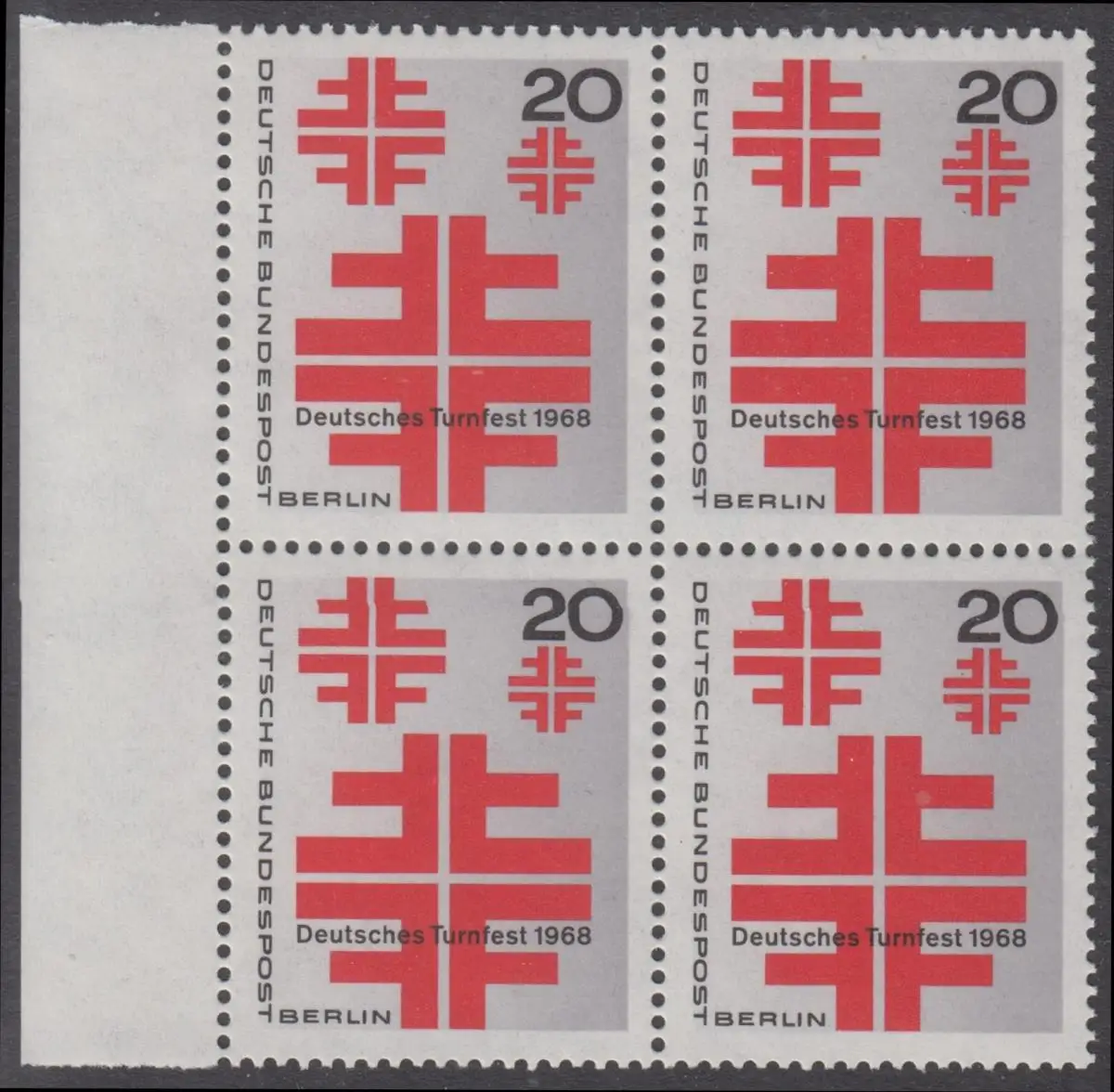 BERLIN 1968 Michel-Nummer 321 postfrisch BLOCK RÄNDER links - Deutsches Turnfest, Berlin