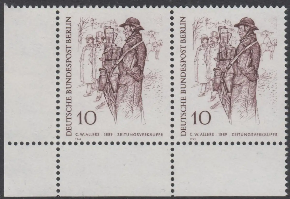 BERLIN 1969 Michel-Nummer 331 postfrisch horiz.PAAR ECKRAND unten links - Berliner des 19. Jahrhunderts: Zeitungsverkäufer