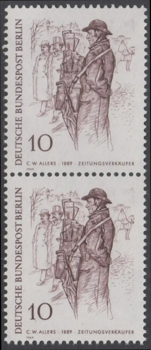 BERLIN 1969 Michel-Nummer 331 postfrisch vert.PAAR - Berliner des 19. Jahrhunderts: Zeitungsverkäufer