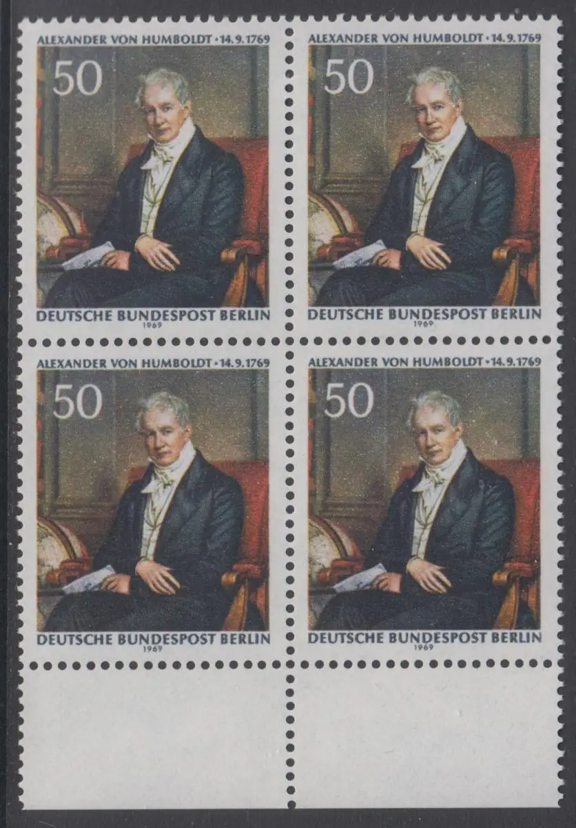 BERLIN 1969 Michel-Nummer 346 postfrisch BLOCK RÄNDER unten - Alexander Freiherr von Humboldt, Naturforscher und Gelehrter