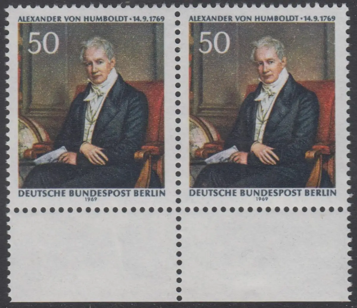 BERLIN 1969 Michel-Nummer 346 postfrisch horiz.PAAR RÄNDER unten - Alexander Freiherr von Humboldt, Naturforscher und Gelehrter