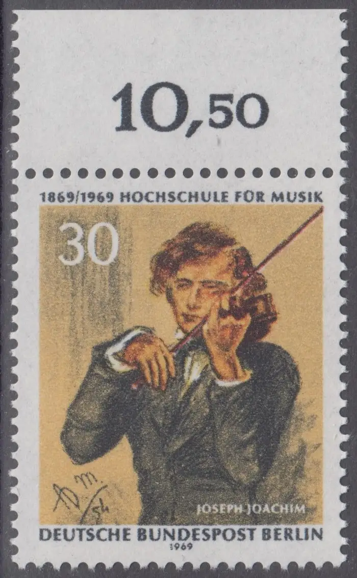 BERLIN 1969 Michel-Nummer 347 postfrisch EINZELMARKE RAND oben (f) - Hochschule für Musik Berlin, Joseph Joachim, 1. Direktor der Schule