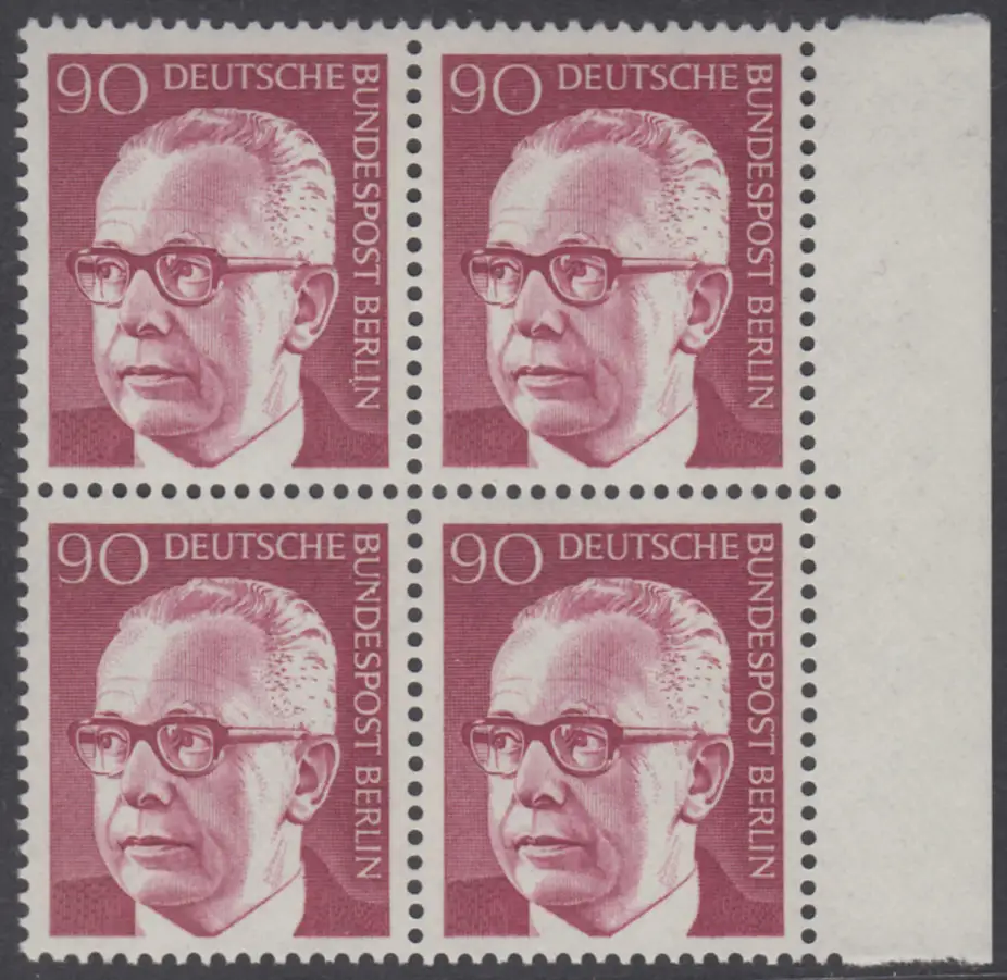 BERLIN 1970 Michel-Nummer 368 postfrisch BLOCK RÄNDER rechts - Bundespräsident Dr. Gustav Heinemann