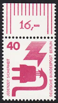 BERLIN 1971 Michel-Nummer 407 postfrisch EINZELMARKE RAND oben (c) - Unfallverhütung: Defekter Stecker