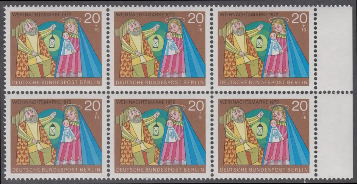 BERLIN 1972 Michel-Nummer 441 postfrisch horiz.BLOCK(6) RÄNDER rechts - Weihnachten