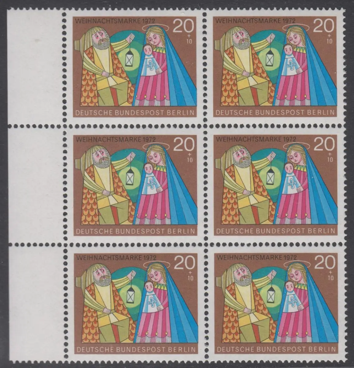 BERLIN 1972 Michel-Nummer 441 postfrisch vert.BLOCK(6) RÄNDER links - Weihnachten