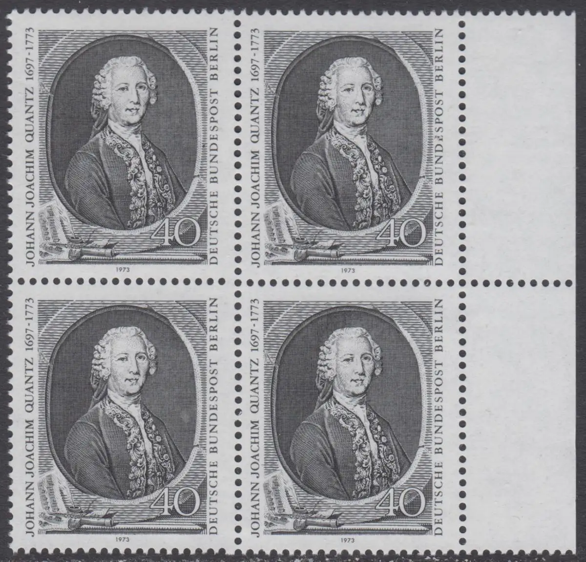 BERLIN 1973 Michel-Nummer 454 postfrisch BLOCK RÄNDER rechts - Johann Joachim Quantz, Flötist und Komponist