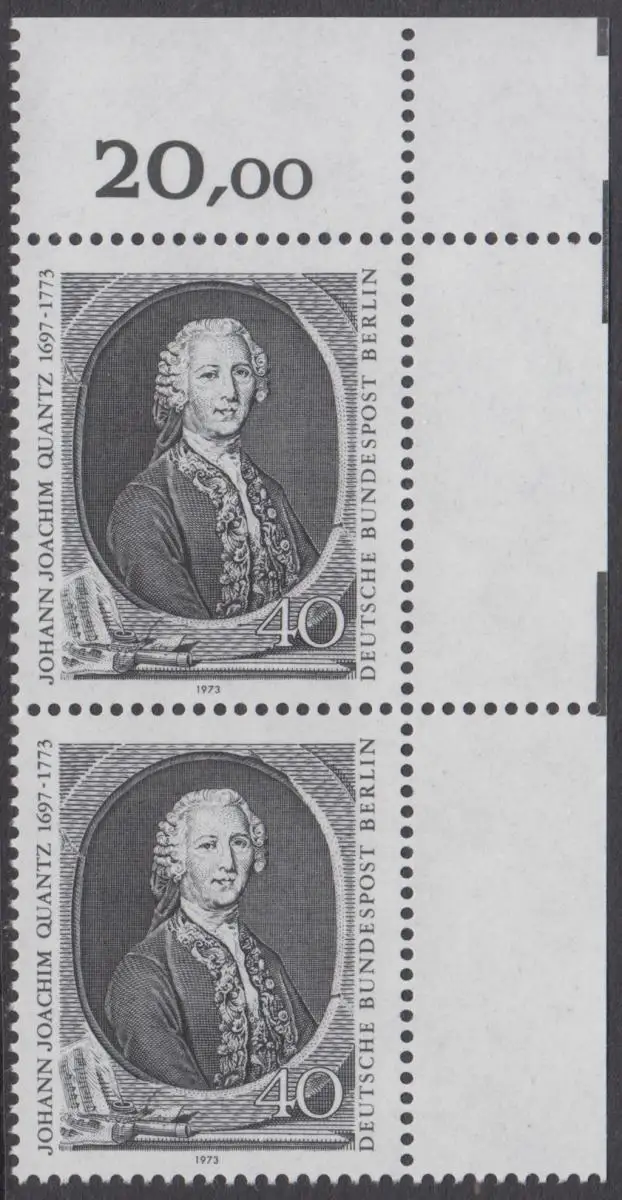 BERLIN 1973 Michel-Nummer 454 postfrisch vert.PAAR ECKRAND oben rechts - Johann Joachim Quantz, Flötist und Komponist